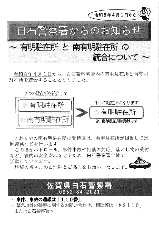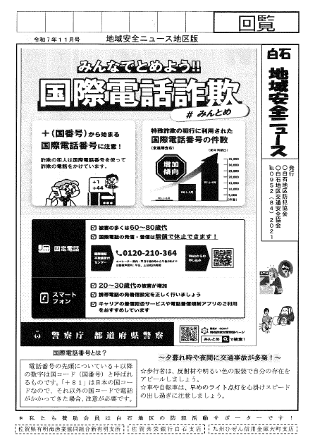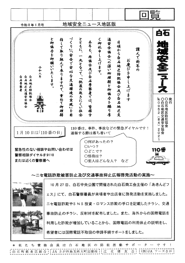 ⇒白石警察署からのお知らせについてのPDFデータはこちら (PDFファイル; 246KB)
