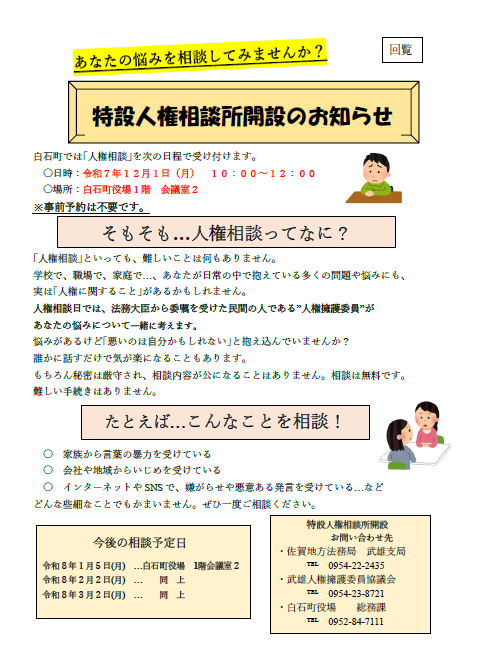 ⇒特設人権相談所開設についてのPDFデータはこちら (PDFファイル; 774KB)