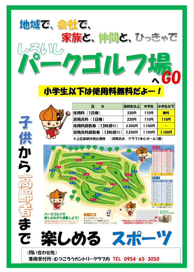 空き状況等のお問い合わせは直接しろいしパークゴルフ場にご連絡ください。
