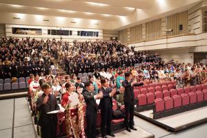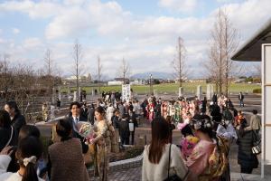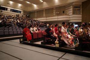 式典当日は晴天に恵まれ、多くの保護者や恩師、来賓が二十歳の門出を祝いました。
