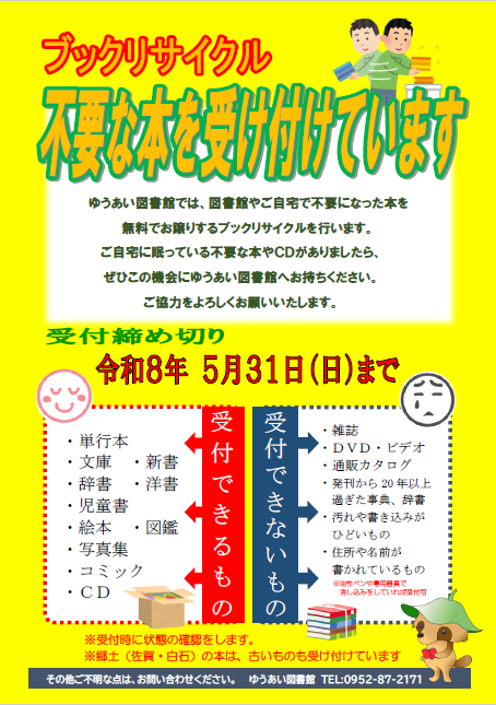 ブックリサイクルのための、不要な本を受付けています。