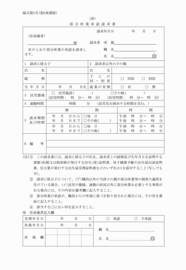 第8条 部分休業の承認の請求は、部分休業承認請求書(様式第5号)により行うものとする。